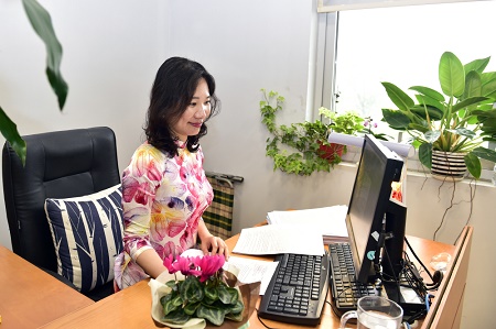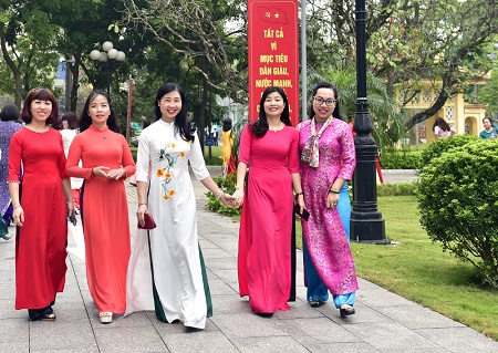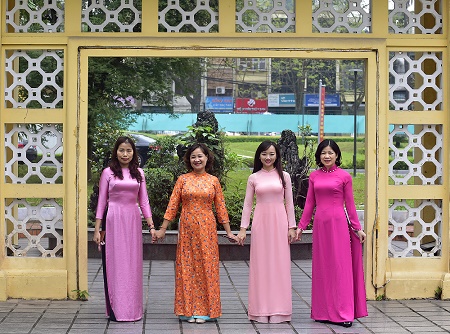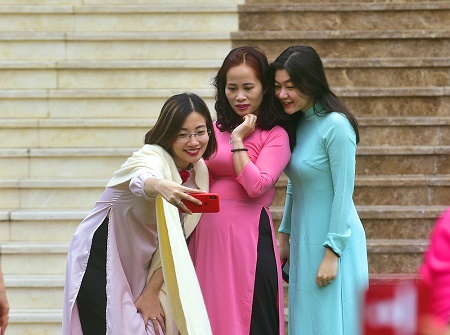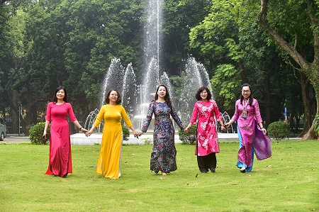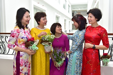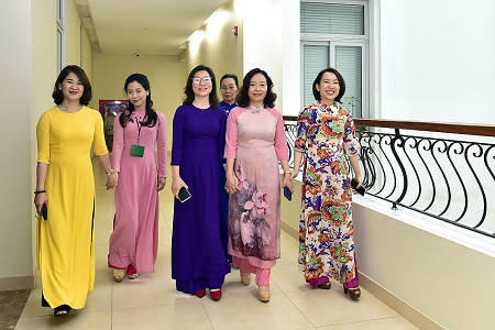 Đông đảo nữ cán bộ, công chức, viên chức các Vụ , Cục, đơn vị trong VPCP đồng loạt mặc áo dài đến công sở như những bông hoa thắm sắc hương.